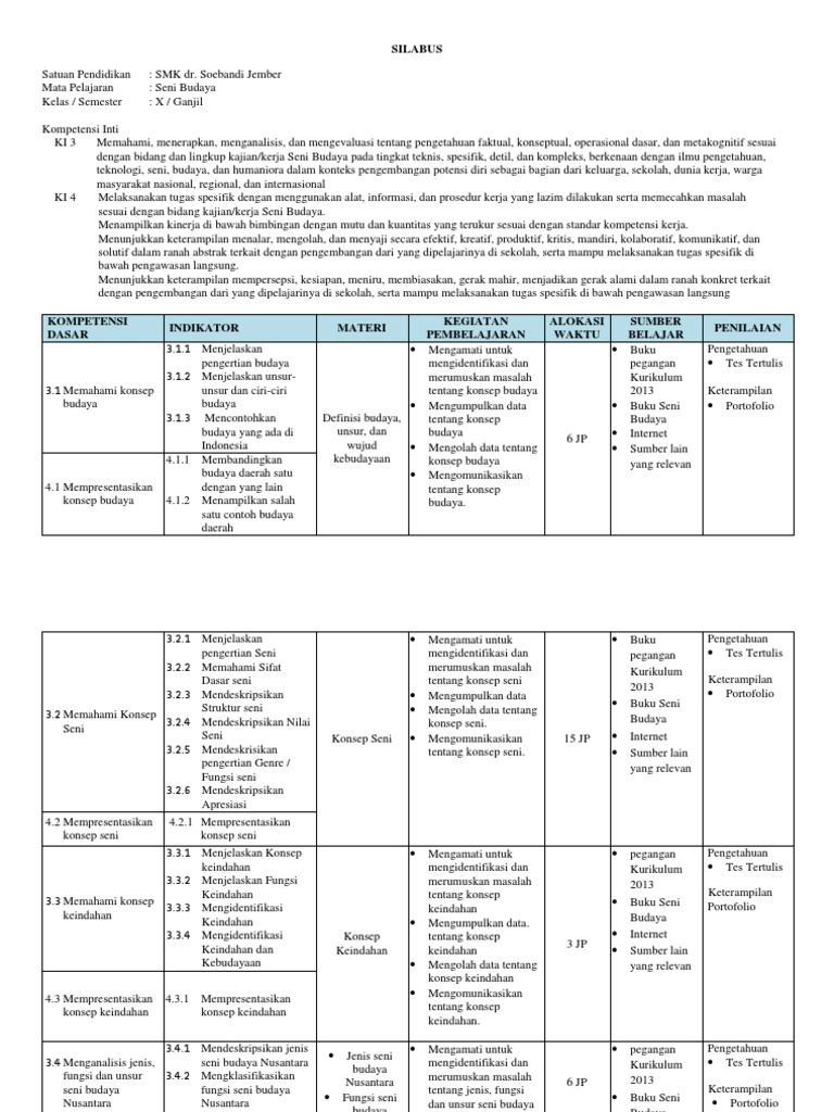 Bagi bapak dan ibu guru yang saat ini mengajar di jenjang smp/mts tepatnya di kelas 7 dan sedang mengajar mata pelajaran seni budaya maka kiranya artikel ini akan dapat bermanfaat bagi anda. Bagi anda guru seni budaya dan sedang membutuhkan perangkat rpp versi 1 lembar mapel seni budaya kelas 8 semester 1 dan semester 2 maka artikel ini akan sangat bermanfaat buat anda, selain itu perangkat yang akan saya bagikan ini juga telah di lengkapi mulai dari materi pada semester 1. Contoh silabus seni budaya smk/mak kelas 10 (x) semester 1 dan 2 kurikulum 2013 edisi revisi tahun 2020. Rpp 1 lembar smp seni budaya merupakan salah satu perangkat mengajar yang dibutuhkan setiap guru mata pelajaran seni budaya dalam perangkat seni budaya tahun 2020 meliputi rpp 1 lembar seni budaya kelas 7 semester 1 dan semester 2, yang disusun berdasarkan silabus seni budaya. Download silabus seni budaya kurikulum 2013 kelas 7 semester 1&2 revisi.